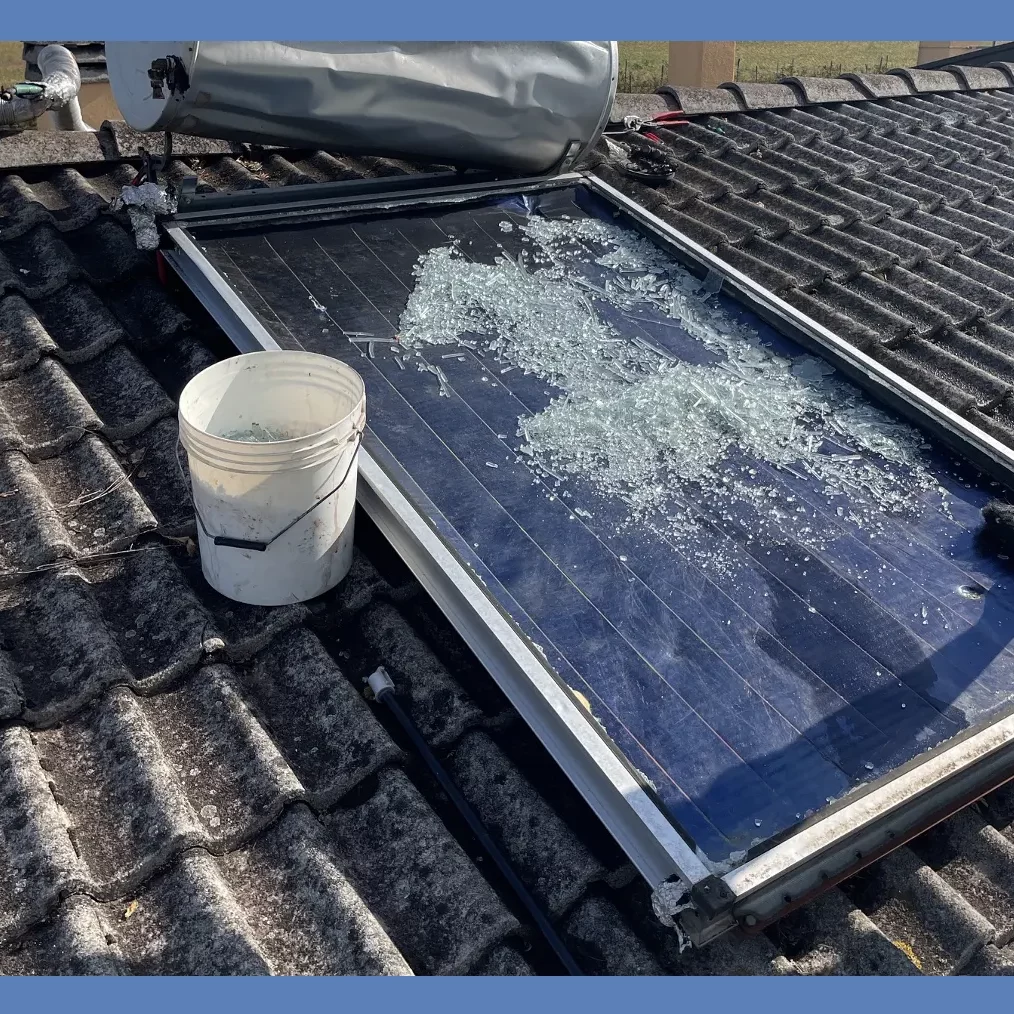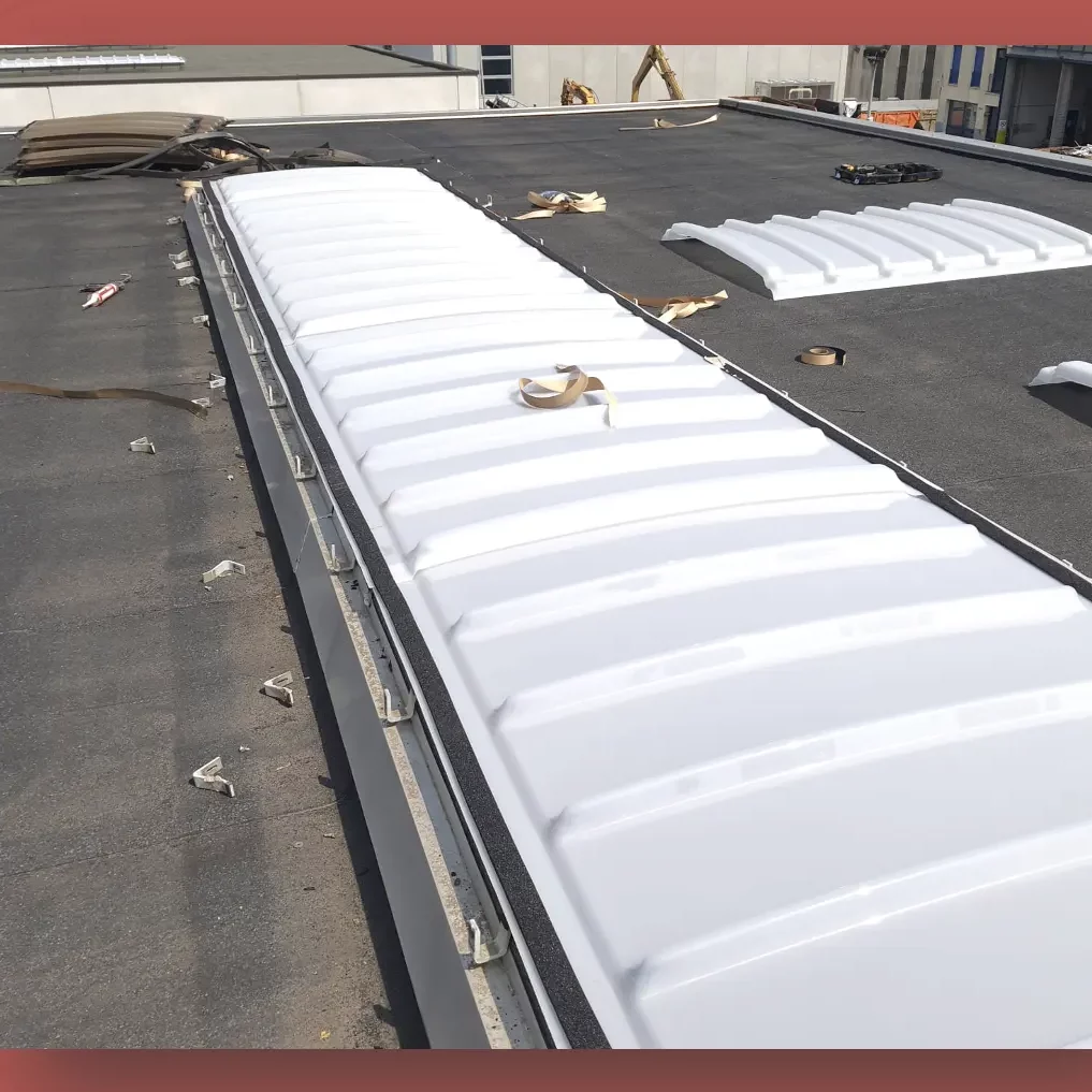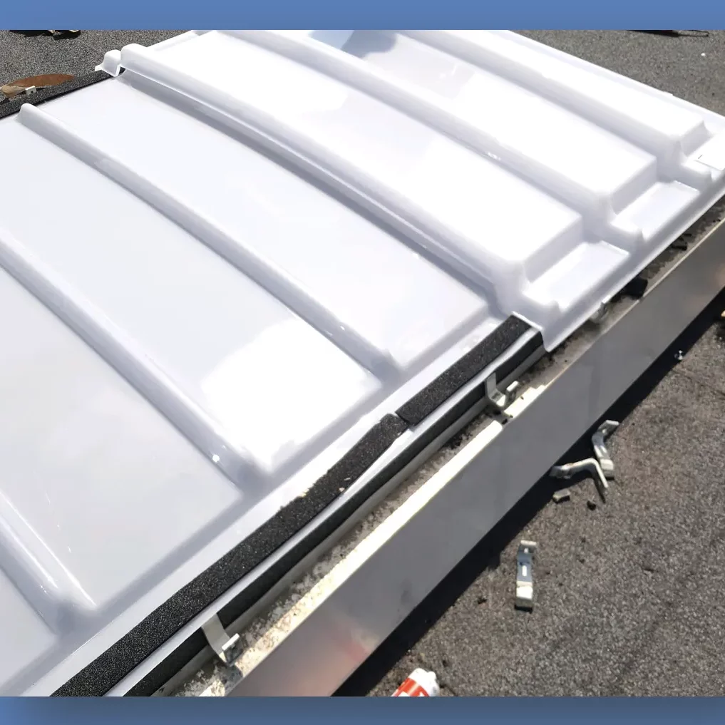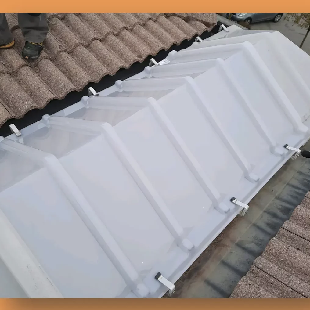 Danneggiamento da grandine dei lucernari in Pvc di un capannone industriale.